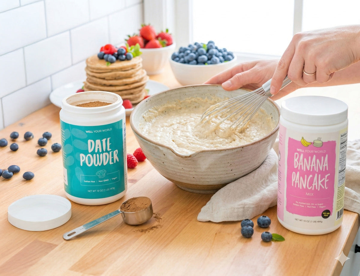 A warm, comforting treat that works for breakfast or dessert! This single-serve fruit crumble combines your favorite frozen fruit with WYW Date Powder and a perfectly spiced topping made with WYW Banana Pancake Mix. No oven required, just microwave and enjoy a cozy, guilt-free indulgence in under two minutes!