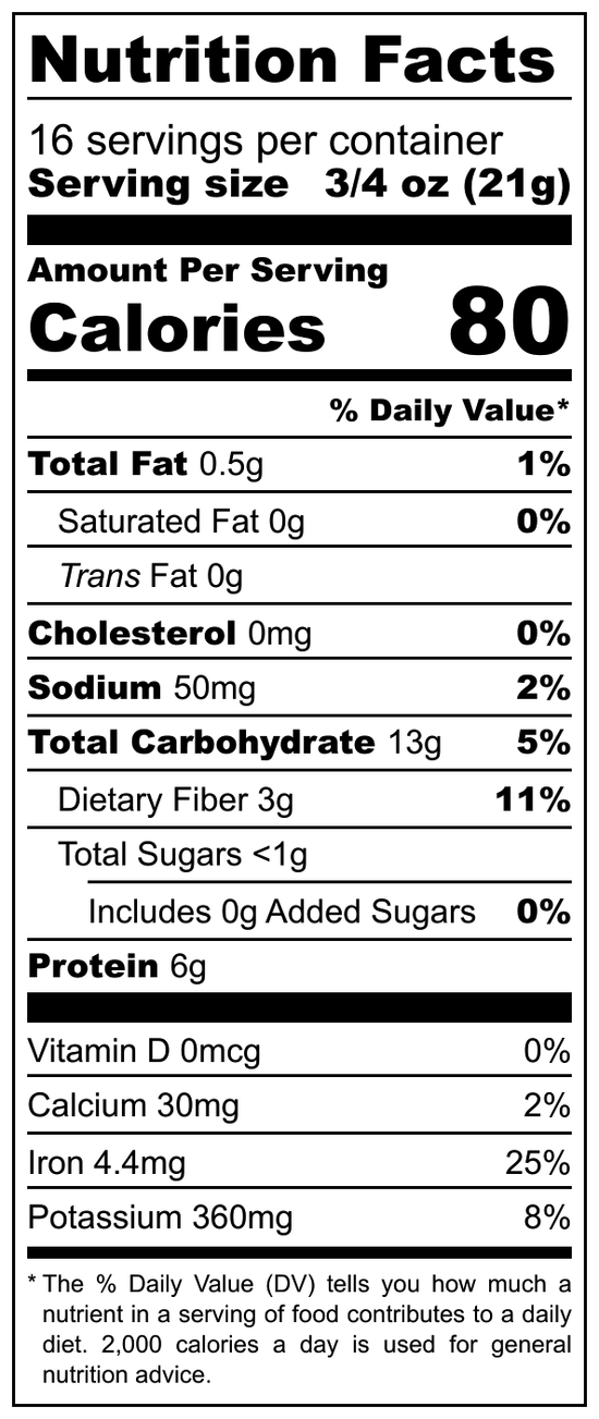 Ingredients: Non-fortified nutritional yeast, russet potatoes, onion, garlic, mustard seed, turmeric, paprika, cumin, black pepper.