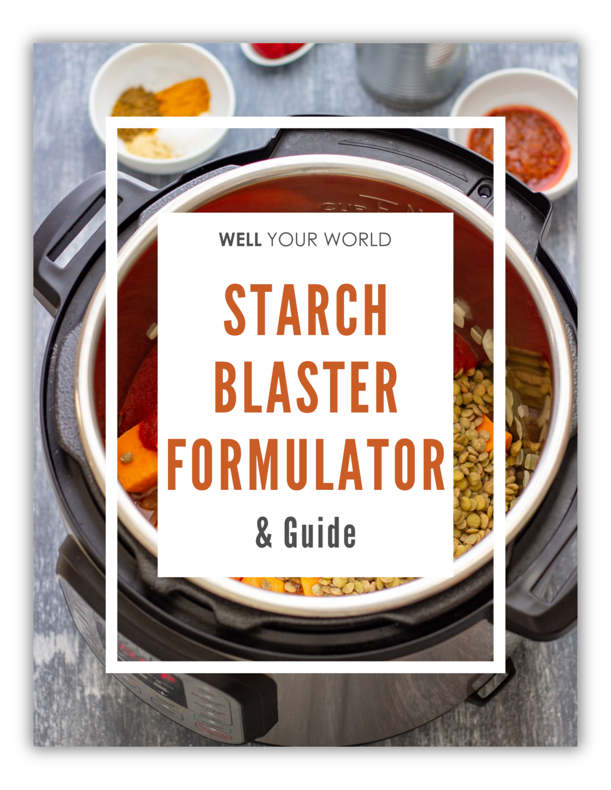 One of my favorite go-to easy, filling meals is STARCH BLASTER! All I do is throw some dry starches, dehydrated veggies, herbs and spices all into the pressure cooker and I've got a delicious hot meal with almost no effort. Check out this Starch Blaster Formulator for several tasty versions!